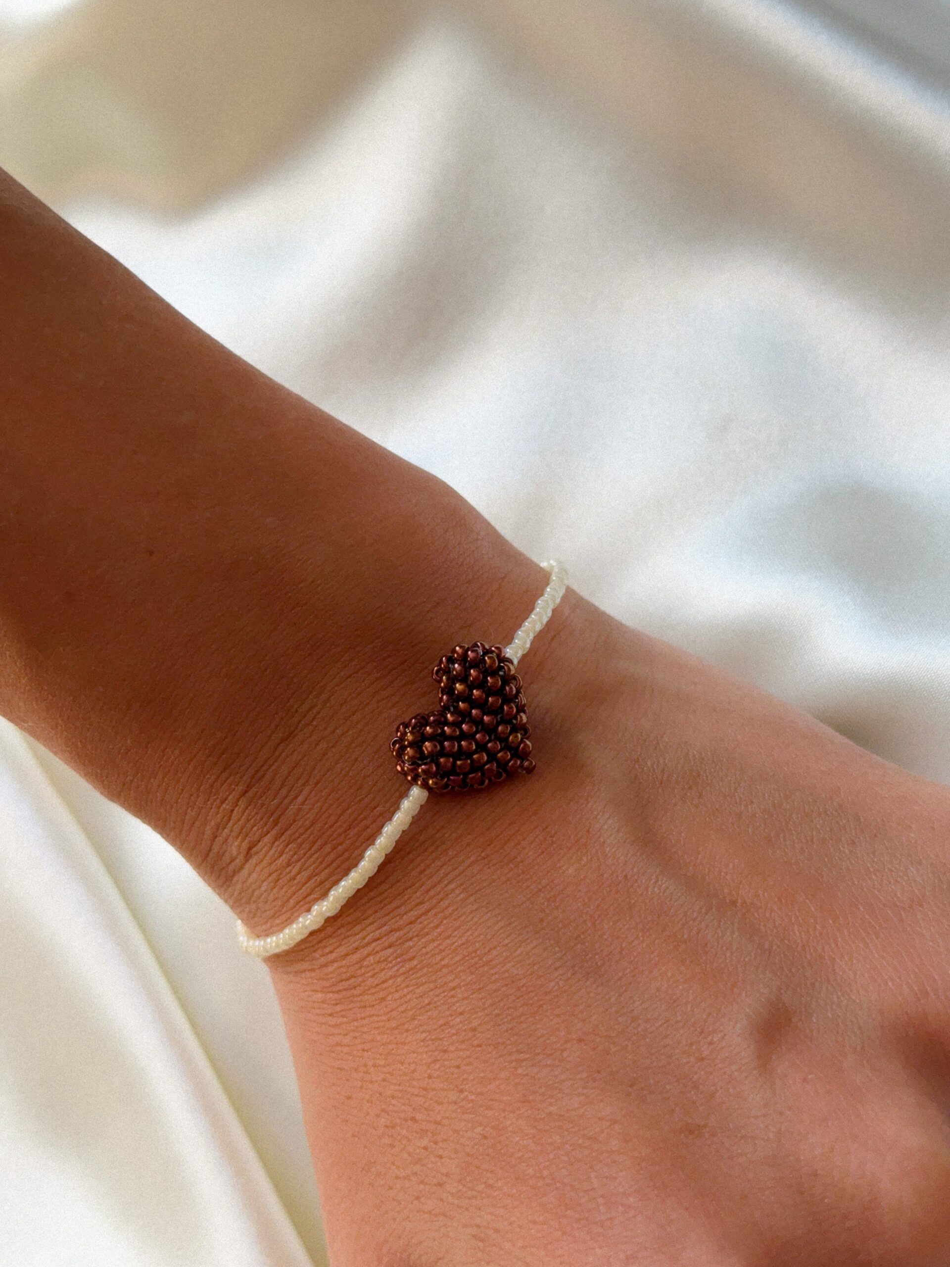 Bransoletka z koralików z brązowym serduszkiem