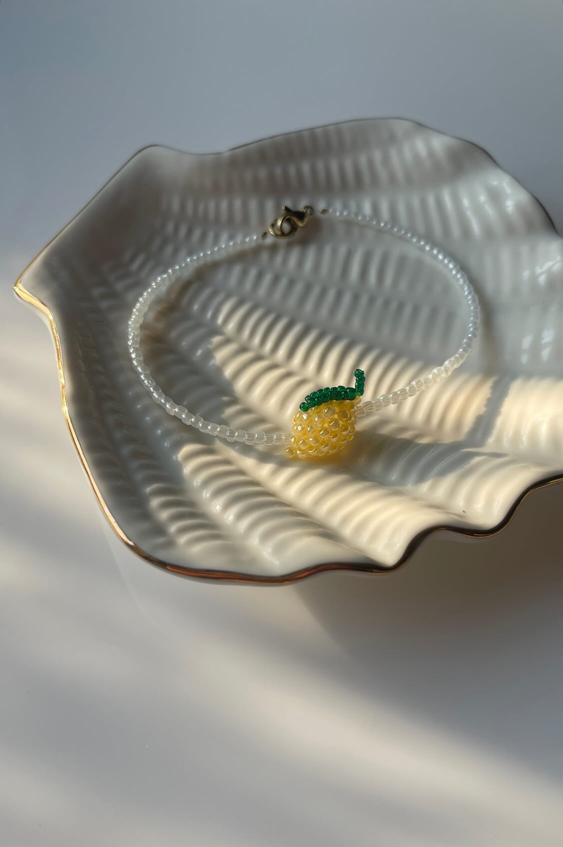 Ręcznie robiona bransoletka z wysokiej jakości koralików, ozdobiona zawieszką w kształcie cytryny. Soczysty, cytrusowy akcent, który rozświetli każdą stylizację i doda jej świeżości.