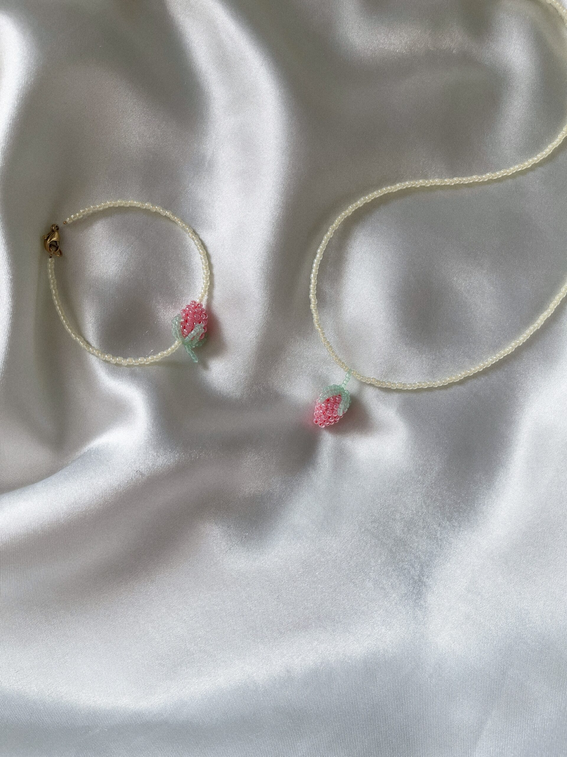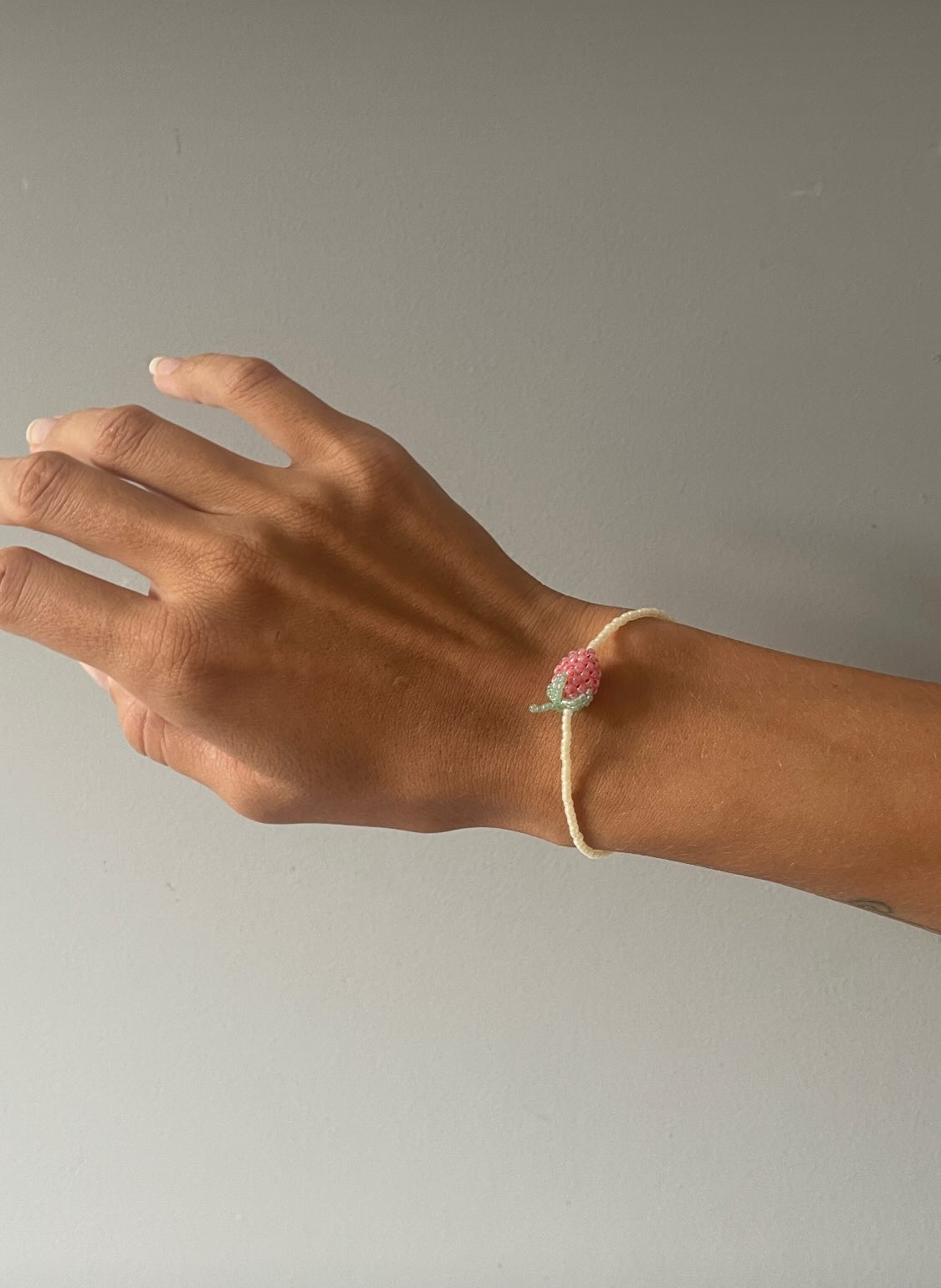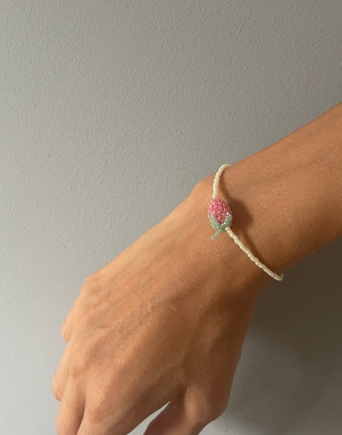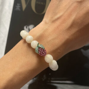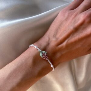 Ręcznie robiona bransoletka z wysokiej jakości koralików, ozdobiona uroczą zawieszką w kształcie truskawki. To słodki, letni akcent, który doda uroku każdej stylizacji — idealny na ciepłe dni i owocowy nastrój!
