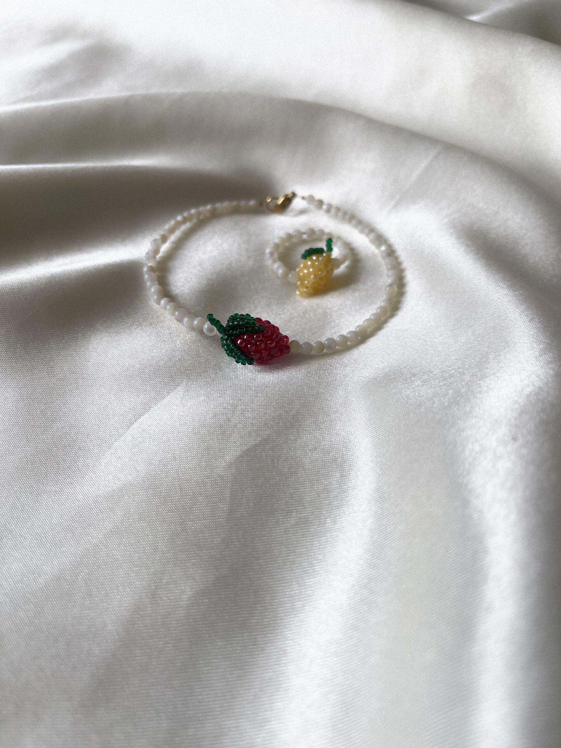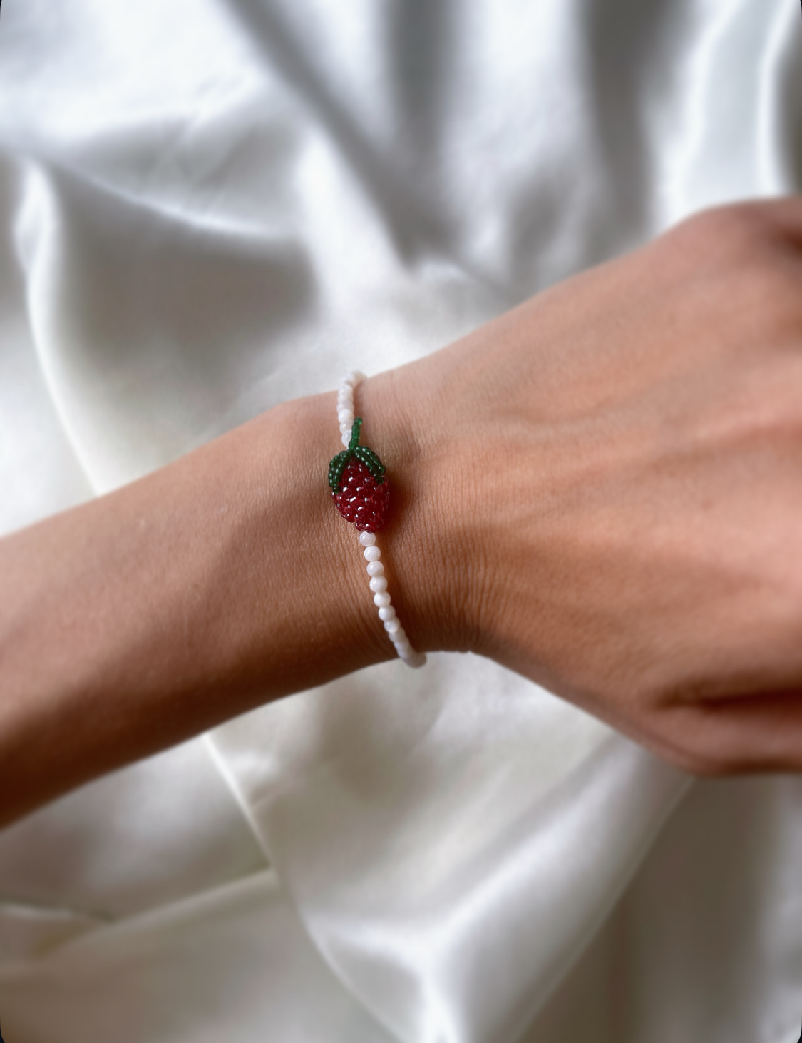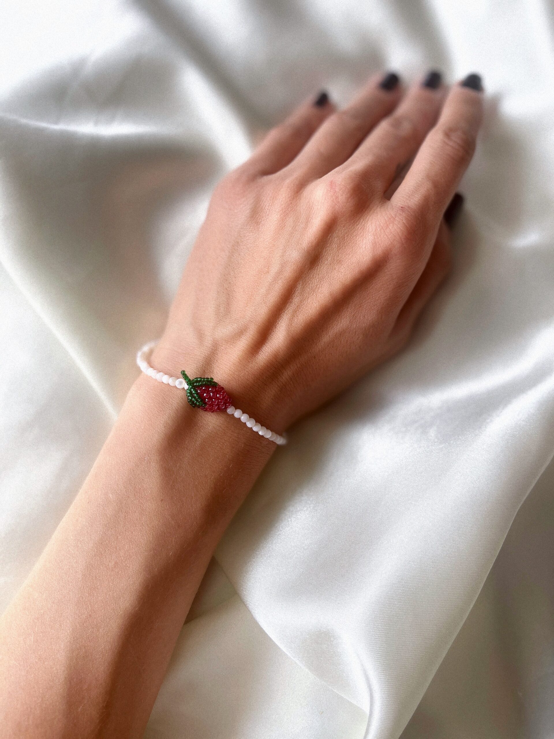 Ręcznie robiona bransoletka z masy perłowej z koralikową truskawką — jak promień słońca i smak pierwszych owoców lata. Delikatna, ale z charakterem. Lśniąca perła spotyka soczystą słodycz, tworząc duet, który przyciąga spojrzenia i poprawia nastrój.