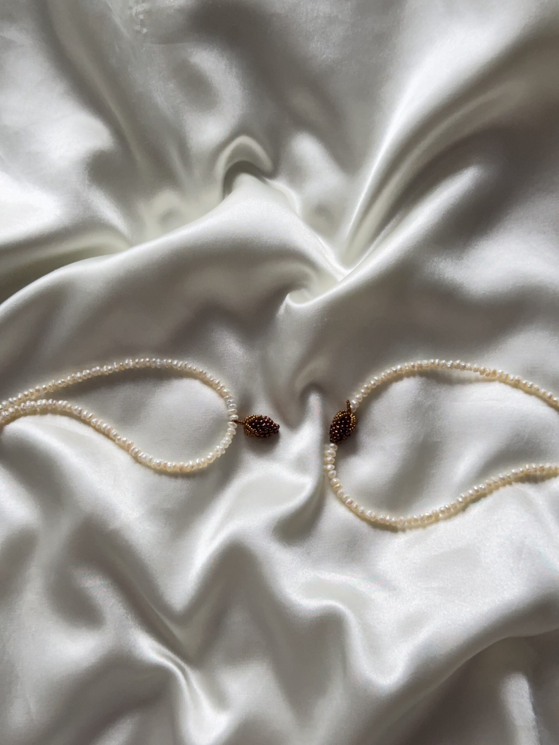 Połączenie subtelnych pereł z ciepłym odcieniem brązu tworzy elegancki, naturalny akcent inspirowany spokojem i barwami natury.
