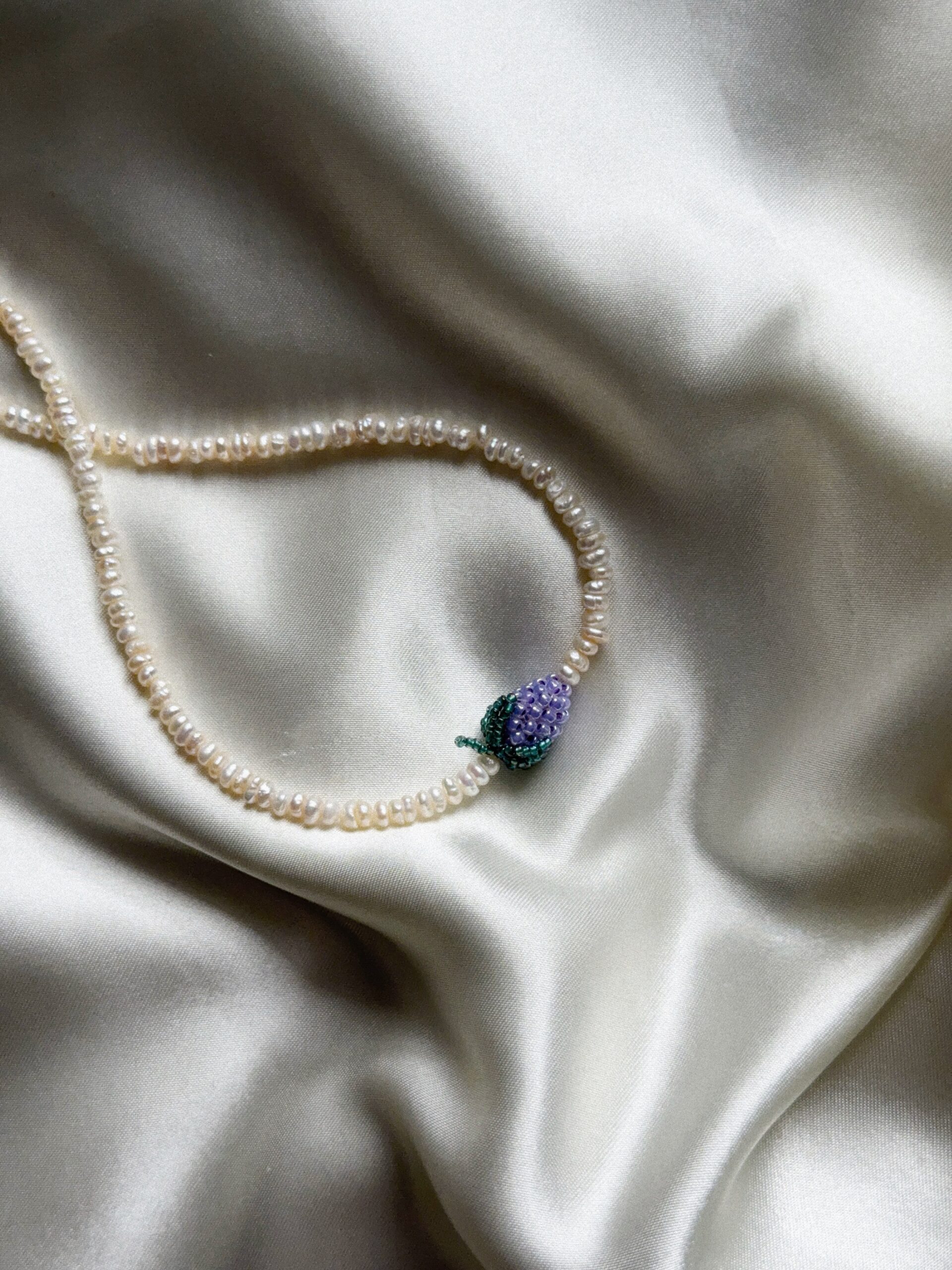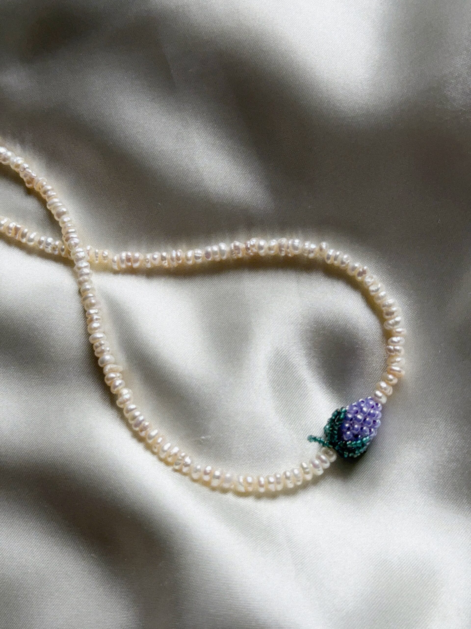 Naszyjnik z drobnych pereł z jasną jeżyną