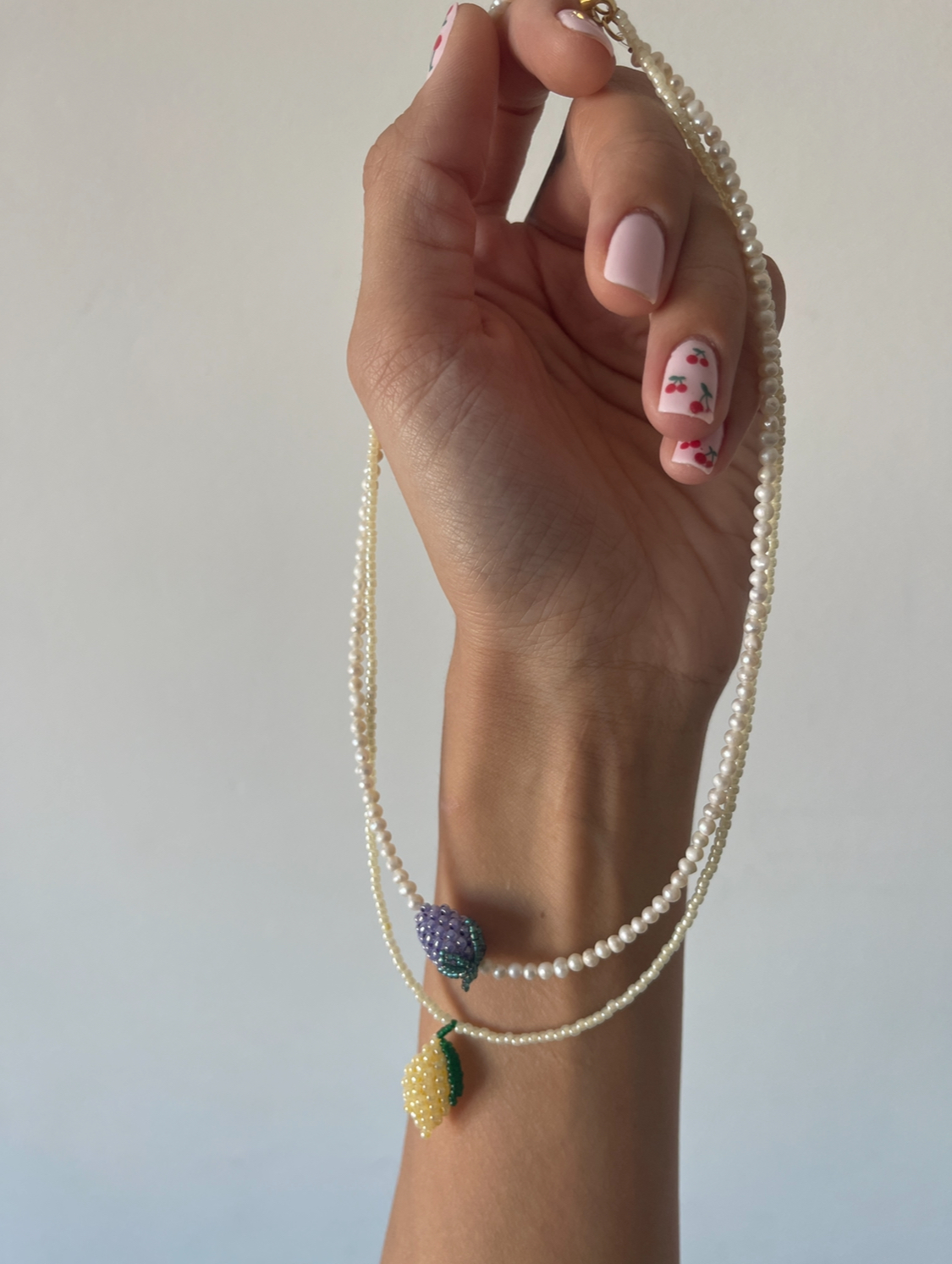Idealnie prezentuje się w duecie z innymi owocowymi naszyjnikami Perelka_mi – stwórz własną, słodką kompozycję.