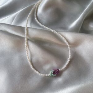 Możesz dopasować kolor koralików na łańcuszku — biały lub kremowy.