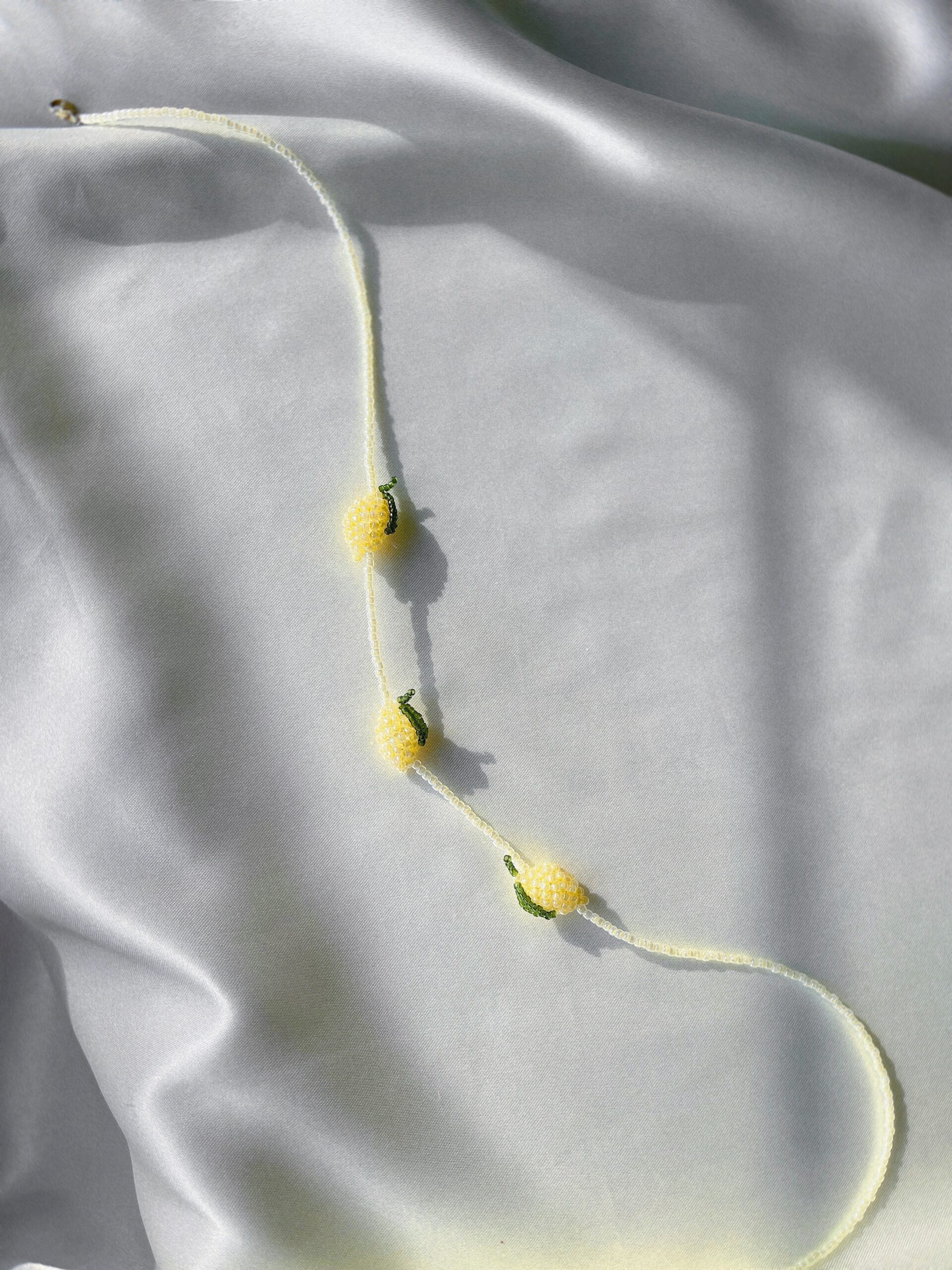 Ręcznie robiony naszyjnik z wysokiej jakości koralików, ozdobiony trzema zawieszkami w kształcie cytryn — to soczysty i radosny akcent, który przyciąga spojrzenia i wnosi do stylizacji odrobinę letniego słońca. Miniaturowe cytrynki dodają lekkości, świeżości i delikatnego uroku.