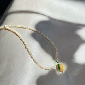 Delikatny naszyjnik wykonany ręcznie z drobnych, naturalnych pereł, ozdobiony zawieszką w kształcie cytryny z koralików. Połączenie subtelnej klasyki z owocowym akcentem sprawia, że to wyjątkowy dodatek zarówno na co dzień, jak i na specjalne okazje. Ułożenie cytrynki – pionowe lub poziome – możesz dobrać według własnych preferencji. Zapięcie ze stali chirurgicznej zapewnia trwałość i komfort…