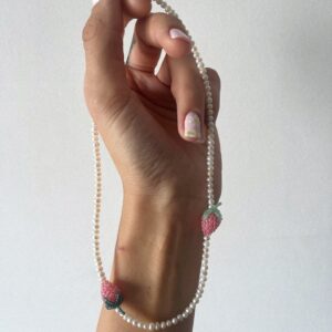 Ręcznie robiony naszyjnik z drobnych, naturalnych pereł, ozdobiony zawieszką w kształcie czerwonej wiśni. To delikatna, ale wyrazista biżuteria, która łączy subtelność pereł z owocowym, soczystym akcentem. Czerwona wiśnia przyciąga spojrzenia i dodaje całości energii, słodyczy i charakteru. Zapięcie ze stali chirurgicznej zapewnia trwałość i wygodę — także dla osób o wrażliwej skórze. Długość standardowa: 42–43…