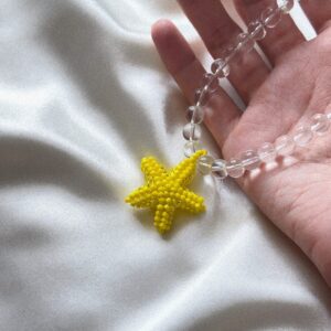 Ręcznie tworzony, promienny naszyjnik z większych koralików o eleganckim połysku – centralną ozdobą jest żółta gwiazda wykonana z drobnych koralików, przywodząca na myśl ciepło letniego słońca. Jej energetyczny kolor rozświetli każdą stylizację, nadając jej radosnego i wyjątkowego charakteru. Zapięcie ze stali chirurgicznej gwarantuje trwałość i komfort noszenia, także dla wrażliwej skóry. Długość: 42–43 cm Każdy…