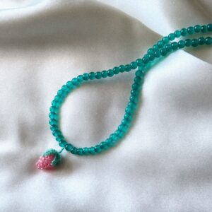 Elegancki, ręcznie robiony naszyjnik z zielonych koralików, ozdobiony zawieszką w kształcie soczystej, różowej malinki. Połączenie głębokiej zieleni z subtelnym różem nadaje mu wyjątkowego charakteru – dziewczęcego, świeżego i pełnego lekkości. Zapięcie wykonane ze stali chirurgicznej jest bezpieczne dla wrażliwej skóry i zapewnia komfort noszenia. Długość standardowa: ok. 42–43 cm. Ręczne wykonanie: każdy egzemplarz może delikatnie…
