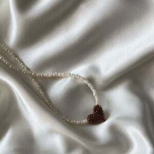 Ręcznie robiony naszyjnik z drobnych, naturalnych pereł, ozdobiony zawieszką w kształcie brązowego serca To subtelna i elegancka biżuteria, w której klasyka pereł łączy się z oryginalnym, ciepłym akcentem Brązowe serce nadaje całości charakteru i sprawia, że naszyjnik pasuje zarówno do codziennych stylizacji, jak i wyjątkowych okazji Zapięcie ze stali chirurgicznej zapewnia trwałość i wygodę także…
