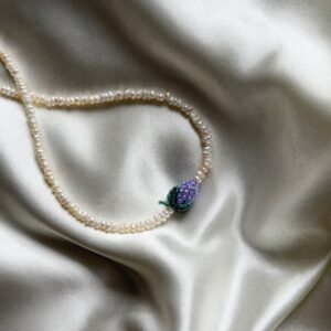 Ręcznie robiony naszyjnik z drobnych, naturalnych pereł, wykończony zawieszką w formie jeżyny. To elegancki, a zarazem lekko owocowy akcent — idealny dla miłośniczek nietuzinkowych dodatków z nutą słodyczy. Możesz wybrać ułożenie zawieszki: poziome lub pionowe — wystarczy zaznaczyć swoją preferencję przy składaniu zamówienia. Zapięcie ze stali chirurgicznej zapewnia trwałość i komfort noszenia — także dla…