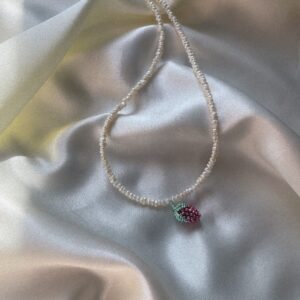 Ręcznie wykonany naszyjnik z drobnych, naturalnych pereł, ozdobiony soczystą maliną wykonaną z drobnych koralików – delikatny, ale z wyrazistym, owocowym akcentem. To kobieca biżuteria, która doda stylizacji świeżości, lekkości i odrobiny słodyczy. Możesz wybrać ułożenie zawieszki: poziome lub pionowe – wystarczy zaznaczyć swoją preferencję przy składaniu zamówienia. Zapięcie ze stali chirurgicznej zapewnia trwałość i komfort…