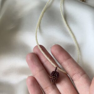 Ręcznie robiony naszyjnik z wysokiej jakości koralików, ozdobiony uroczą zawieszką w formie jeżyny. Ten owocowy detal dodaje charakteru i naturalnego uroku każdej stylizacji. Możesz wybrać ułożenie zawieszki: poziome lub pionowe, a także kolor koralików na łańcuszku — biały lub kremowy. Zapięcie ze stali chirurgicznej zapewnia trwałość i komfort noszenia — także dla osób o wrażliwej…