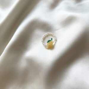 Delikatny, ręcznie robiony pierścionek z masy perłowej, ozdobiony koralikową cytrynką. To mały owocowy akcent, który doda świeżości każdej stylizacji – idealny na lato, ale i na poprawę humoru w chłodniejsze dni. Pierścionek jest elastyczny, więc delikatnie dopasowuje się do palca. Dla miłośniczek subtelnych dodatków z nutą słodyczy i cytrynowej energii! Jak wybrać rozmiar? Zmierz obwód…