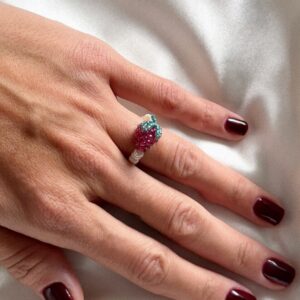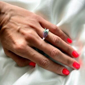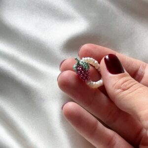 Delikatny, ręcznie robiony pierścionek z drobnych perełek, ozdobiony soczystą maliną wykonaną z maleńkich koralików. To subtelny, a jednocześnie radosny akcent, który doda stylizacji świeżości i dziewczęcego uroku. Idealny na lato – i na każdy dzień, kiedy potrzebujesz odrobiny słodyczy. Pierścionek ma rozmiar uniwersalny (ok. M–L) – jest elastyczny, dzięki czemu delikatnie dopasowuje się do palca…