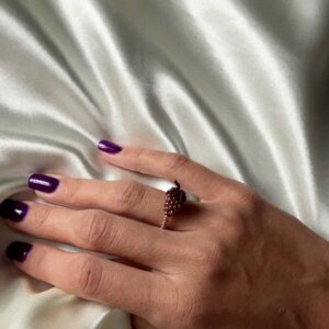 Delikatny, ręcznie robiony pierścionek z drobnych złotych koralików, ozdobiony brązowym owocem z koralików. To biżuteria pełna subtelności i uroku – złote koraliki dodają blasku i elegancji, a brązowy owoc wprowadza naturalny, ciepły akcent i wyjątkowy charakter. Elastyczna baza sprawia, że pierścionek dopasowuje się do palca, zapewniając komfort noszenia. Idealny dla miłośniczek unikatowych dodatków, które łączą…