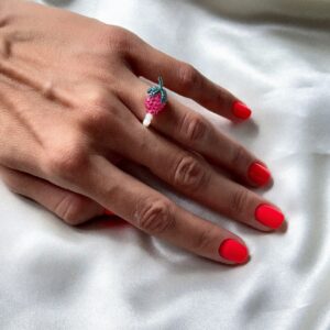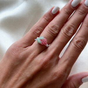 Delikatny, ręcznie robiony pierścionek z masy perłowej, ozdobiony soczystą koralikową malinką. To biżuteria jak z bajki – lekka, kobieca i wyjątkowa. Elastyczna baza sprawia, że pierścionek delikatnie dopasowuje się do palca, zapewniając komfort noszenia. Dla miłośniczek subtelnych dodatków z nutą owocowej radości i malinowej energii. Jak wybrać rozmiar Zmierzyj obwód palca nitką, paskiem papieru lub…